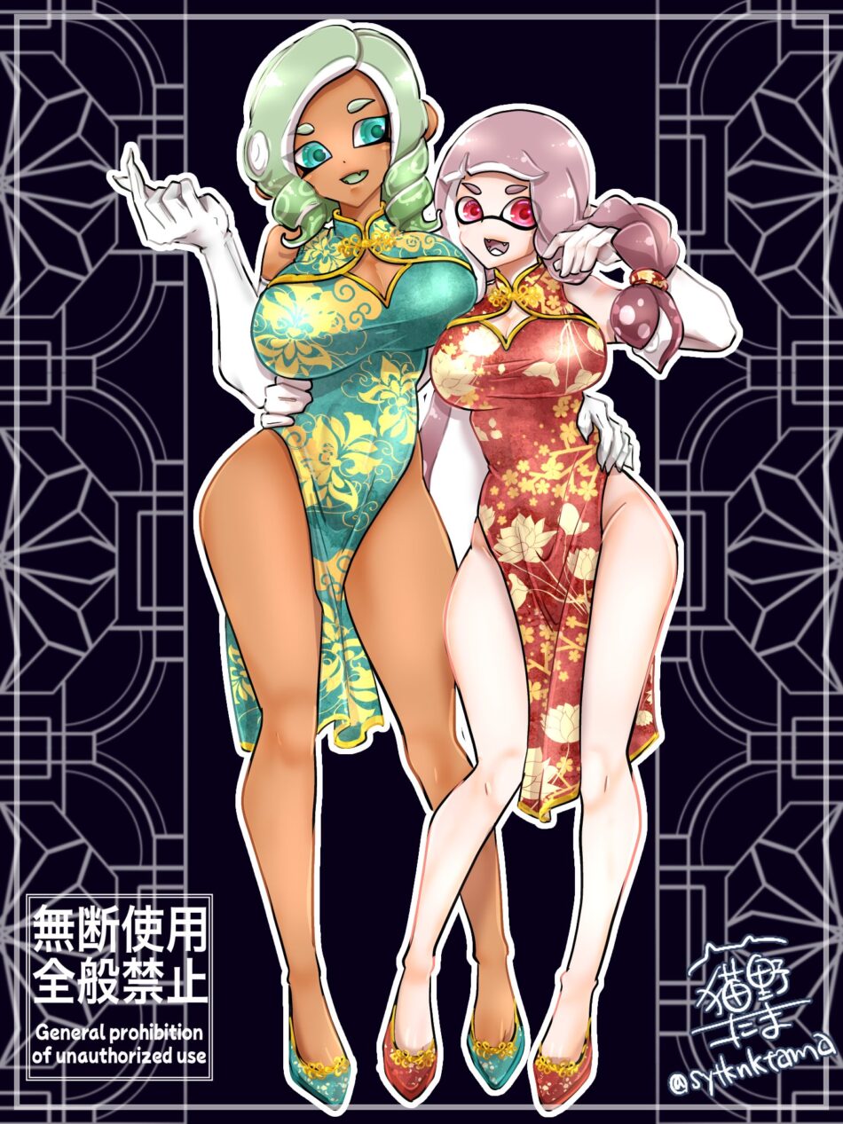 Hentai Busty – 2 girls big breasts breasts chinese dress curly hair dress gbeimtama green