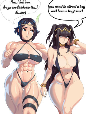 Hentai Busty – 2 girls alluring arant king athletic female big breasts bikini cleavage