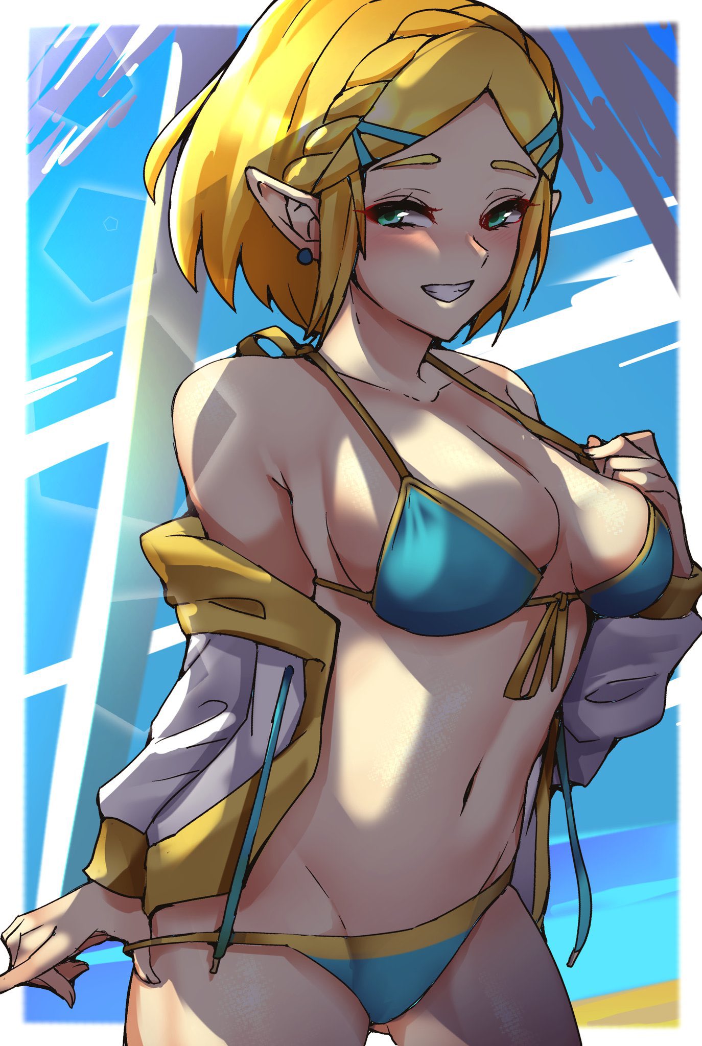Hentai Busty – 1340smile 1girl 1girl alluring beach big breasts bikini bikini bottom pull