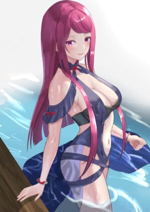Hentai Busty – 1girl absurd res alluring big breasts casual one-piece bikini dress swimsuit