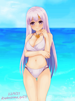 Hentai Busty – 1girl alluring bare legs beach big breasts bikini blush circlet cleavage