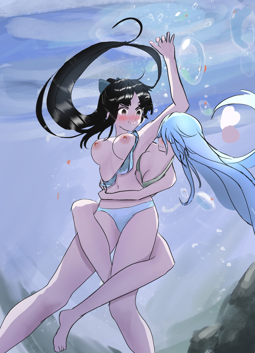 Hentai Busty – 2girls air bubbles big breasts black eyes black hair blue hair breasts dark