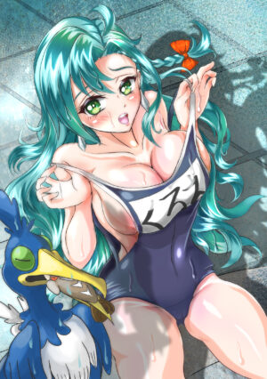 Hentai Busty – 1girl 1girl 1girl alluring alternate costume aqua hair ass visible through